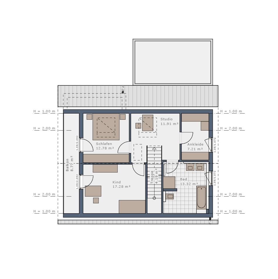 Ein Dachgeschoss ist in diesem Modell nicht vorgesehen, was den Fokus auf eine klare und effiziente Nutzung der vorhandenen Wohnfläche lenkt.